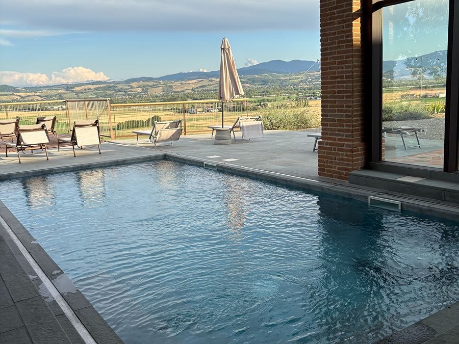 Las instalaciones: Los espacios estan diseñados para relajarse al aire libre. Piscina y jacuzzi con vista a las colinas, sillas para tomar el sol, zonas verdes amplias donde simplemente puedes pasear o sentarte a leer. Todo invita a desconectar y a disfrutar del ritmo pausado del campo italiano.