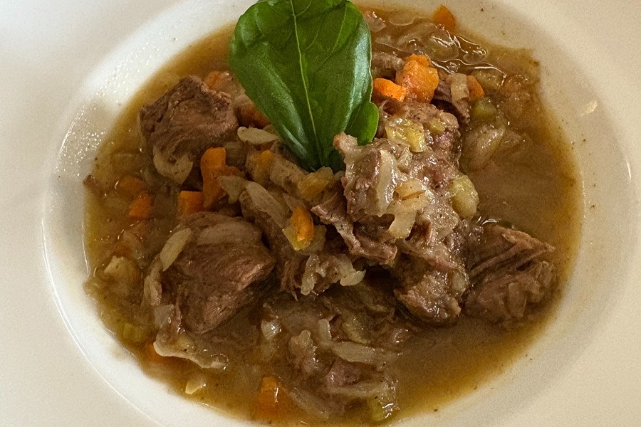 De fuerte: compartimos el famoso Tagliatelle al Ragù, el primero de todo el viaje. También pedimos una carne de rescocinada a fuego lento en vino blanco, un plato que me hizo sentir que estaba en Italia, a pesar de no ser pasta, tenía sabores profundos y tradicionales.