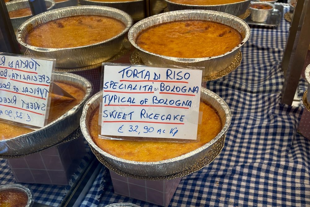 Torta di riso: pastel de arroz con leche, azúcar, huevo y piel de limón. Muy tradicional en celebraciones boloñesas.