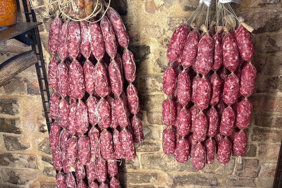 El embutido más famoso de la ciudad: suave, aromático y con cubitos de grasa blanca que le dan jugosidad. A veces lleva pistachos.