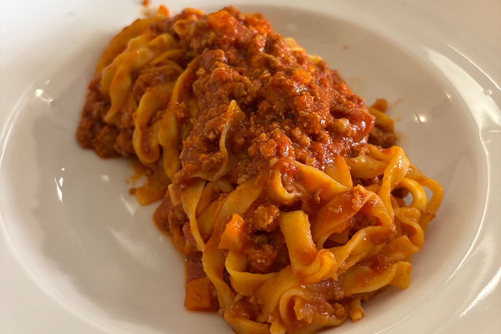 Este es, sin duda, el plato más representativo de Bolonia. Aunque en el mundo se popularizó como “espagueti a la boloñesa”, la receta auténtica jamás se prepara con espaguetis, sino con tagliatelle, una pasta fresca larga y plana que, gracias a su textura porosa, se adhiere perfectamente a la salsa.
