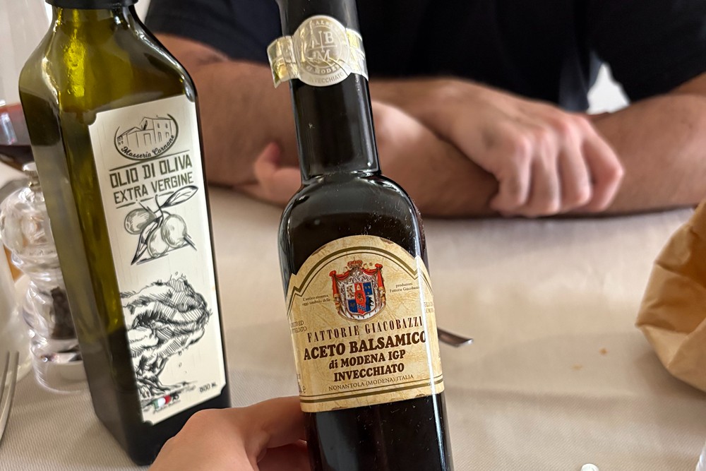 Aceto Balsámico Tradicional de Módena: Es espeso, agridulce y envejecido durante años en barricas de madera. Las versiones más añejas pueden costar más de 100 €. Yo no visité directamente Módena, pero probé el balsámico en varios restaurantes de Bolonia y Parma y me pareció espectacular.